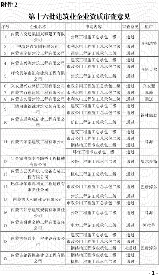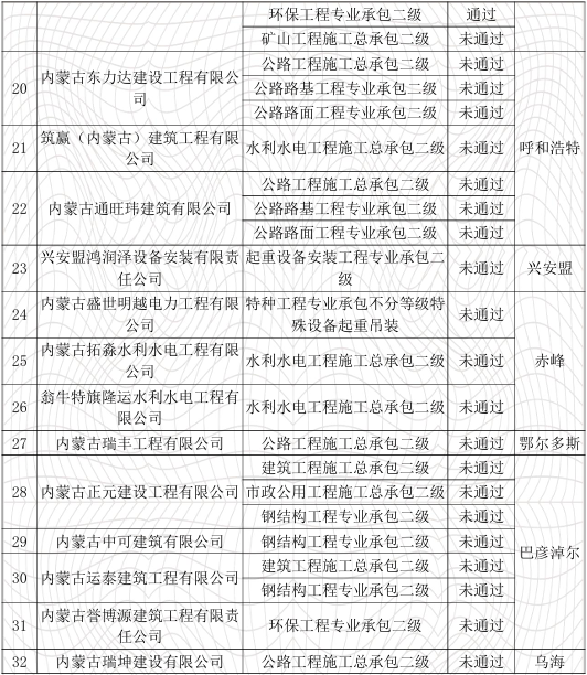按照《中华人民共和国行政许可法》及有关住建领域企业资质管理规定,我厅对2025年度第十六批行政审批事项申报材料进行了审查,现将1家勘察设计企业、32家建筑业企业、2家建设工程监理企业、53家建筑施工企业安全生产许可证审查意见予以公示(见附件),公示期截止2025年5月22日17时30分;将3家建设工程质量检测机构审查意见予以公示(见附件),公示期截止2025年5月29日17时30分。对所公示意见有异议或有问题的,可以提出申辩,审查意见为未通过的企业可从行政审批系统里查看具体意见。