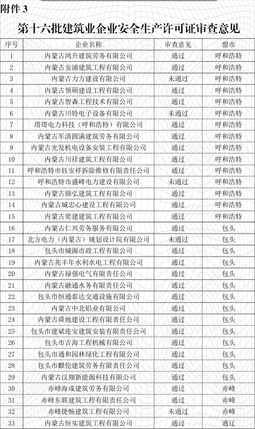 4.第十六批建筑业企业安全生产许可证资质审查意见