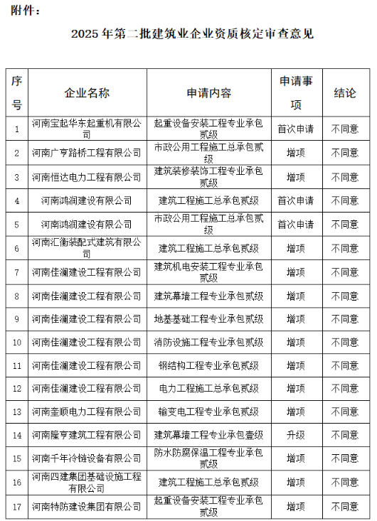 附件:2025年第二批建筑业企业资质核定审查意见.doc