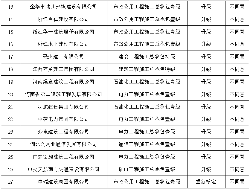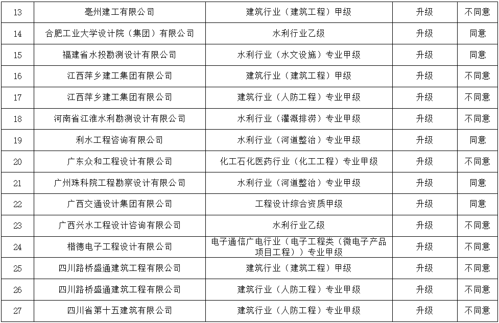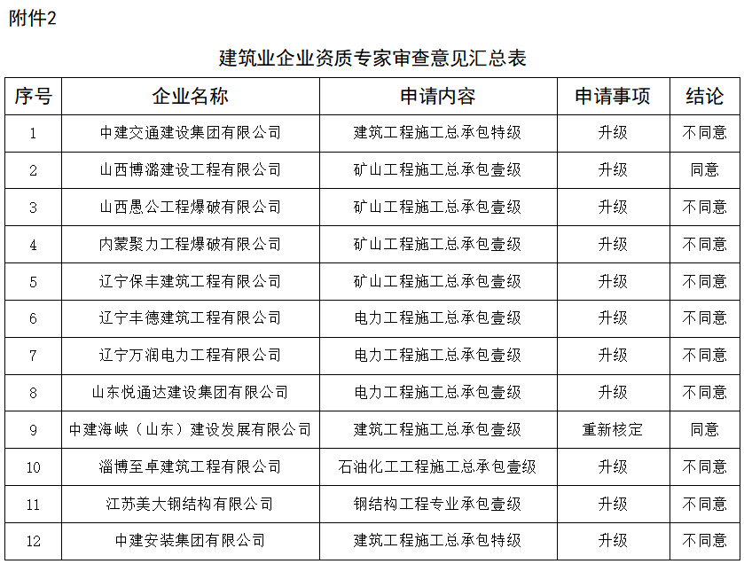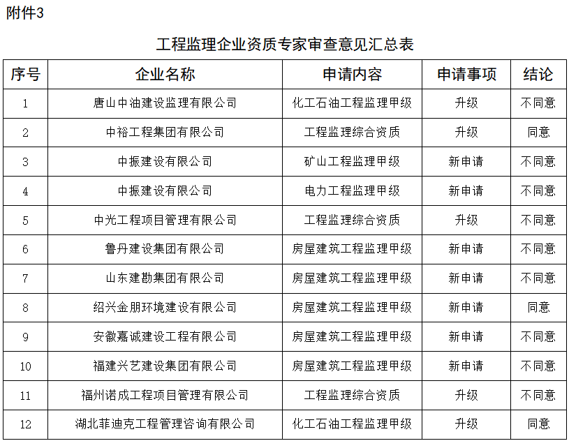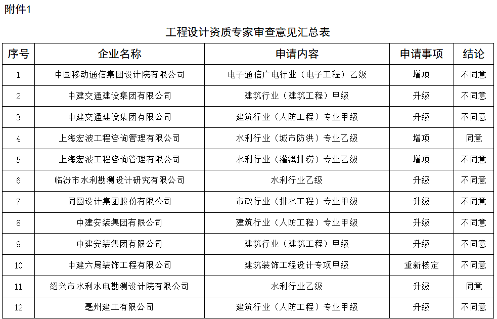 按照《行政许可法》及有关建设工程企业资质管理规定,我部对近期申请建设工程企业资质的申报材料组织了专家审查,现将专家审查意见在住房城乡建设部门户网站(https://www.mohurd.gov.cn)予以公示,以广泛接受社会监督。企业申报材料中的人员、代表工程业绩等详细情况,可通过点击“住房城乡建设部门户网站→建设工程企业资质行政审批专栏→资质申报基本信息公示”进行查询。